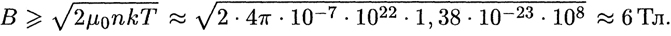 Концентрация частиц в термоядерной плазме n ≈ 1022м-3. Отсюда для индукции удерживающего магнитного поля получим