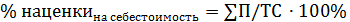 Существуют два метода расчета наценок (прибыль) исходя из: